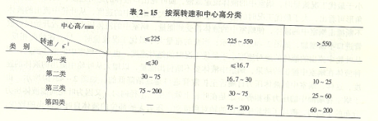 開展測量。表2 - 15所顯示為泵按轉速比和管理中心高歸類。