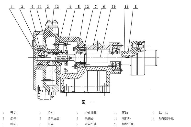 5、泵軸和軸承在沒有毀壞的狀況下是不需要拆卸的,假如必須拆卸,務必先把軸承箱里邊的潤滑脂放整潔,隨后再拆卸軸承后蓋板和連軸器,向泵體方位拆卸泵軸就可以。