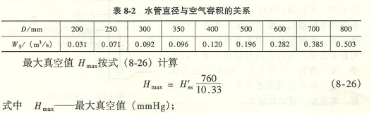 Ws表明從進蓄水池zui低水位線起算的進水口的總容積(m3),依據吸水管直徑和長短測算,一般可查詢表8-2求??;