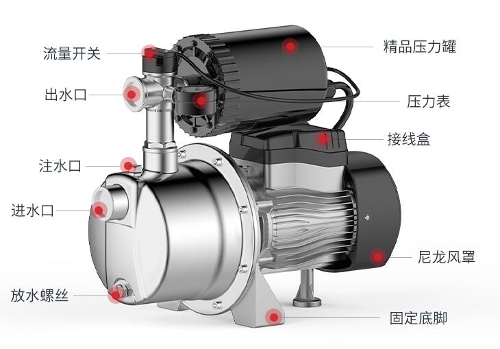 3、家用自動(dòng)增壓泵的電源應(yīng)與地線良好接觸,并應(yīng)安裝泄漏開(kāi)關(guān),以確保安全使用。